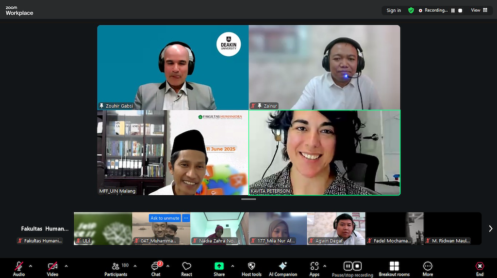 SASING – (22/10/2025) Program Studi Sastra Inggris (Sasing) Fakultas Humaniora UIN Maulana Malik Ibrahim Malang kembali menggelar forum akademik internasional bergengsi bertajuk International Scholar Engagement (ISE), menghadirkan akademisi asal Australia, Dr. Zouhir Gabsi dari Deakin University, pada Rabu (22/10). Kegiatan ini mengusung tema menarik dan relevan dengan situasi global saat